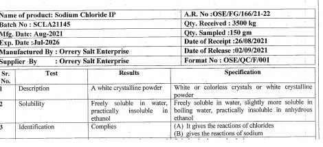 we do manufacturing of sodium and potassium chloride IP/Bp/USP, for oral grade as well injectable grade also
